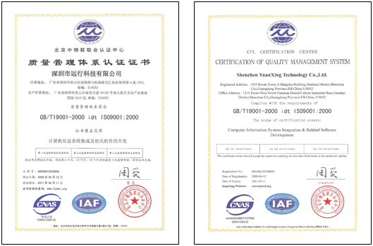 6月12日,深圳遠(yuǎn)行科技順利通過GB/T190001-2000 idt ISO9001:2000質(zhì)量管理體系認(rèn)證,從而使公司在軟件研發(fā)管理和計(jì)算機(jī)信息系統(tǒng)集成能力跨上了一個(gè)新臺階。