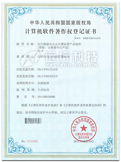 遠(yuǎn)行云數(shù)據(jù)中心產(chǎn)品獲得著作權(quán)登記證書