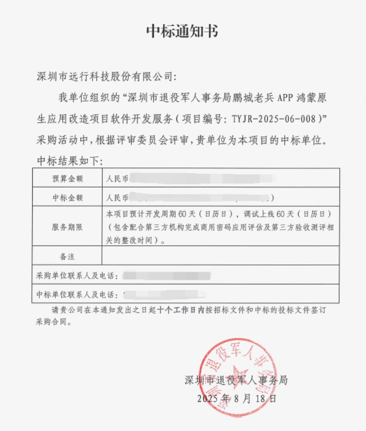遠行科技中標「鵬城老兵APP鴻蒙化改造」!以自主可控技術守護退役軍人數字化服務?