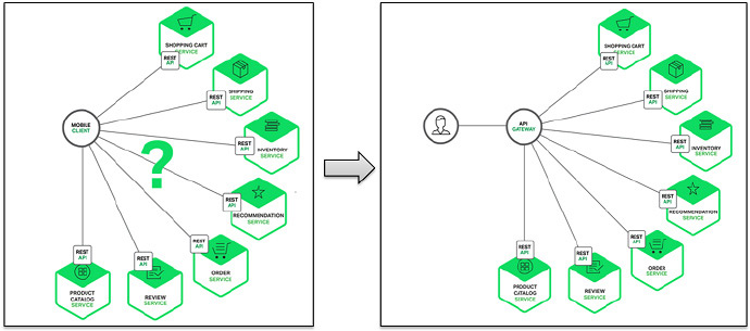 那么對(duì)于復(fù)雜的各個(gè)模塊間的點(diǎn)對(duì)點(diǎn)調(diào)用,就需要有一個(gè)類似ESB總線的中間件將這些接口服務(wù)統(tǒng)一管理起來(lái),以實(shí)現(xiàn)對(duì)服務(wù)注冊(cè),安全,流控,日志審計(jì),消息,代理和路由的統(tǒng)一管理。而這些轉(zhuǎn)到微服務(wù)架構(gòu)后即是由微服務(wù)網(wǎng)關(guān)來(lái)完成。