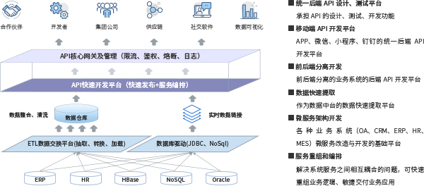 涵蓋API快速開發–›網關集成–›監控分析,支撐微服務架構下API的全生命周期管理